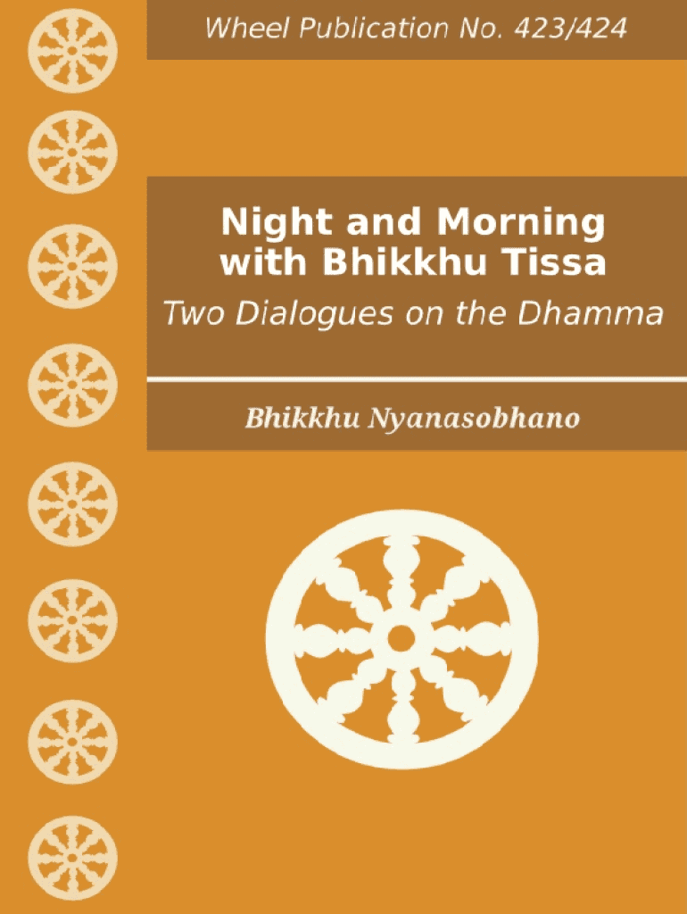 Night and Morning with Bhikkhu Tissa Two Dialogues on the Dhamma byBhikkhu Nyanasobhano Buddhist Publication Society Kandy Sri LankaThe Wheel Publication No. 423/424 Published in 1998 Copyright 1998