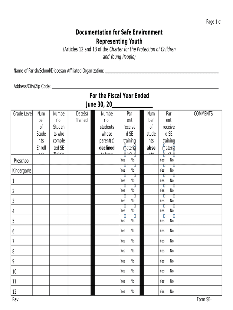 What is Documentation for Safe Environment Representing Youth Form?