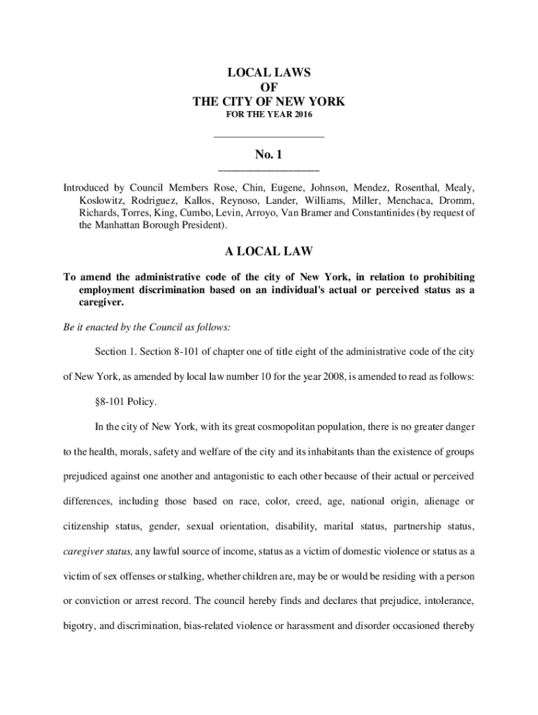 LOCAL LAWS OF THE CITY OF NEW YORK FOR THE YEAR 2016 ___No. 1 ___Introduced by Council Members Rose, Chin, Eugene, Johnson, Mendez, Rosenthal, Mealy, Koslowitz, Rodriguez, Kallos, Reynoso, Lander,