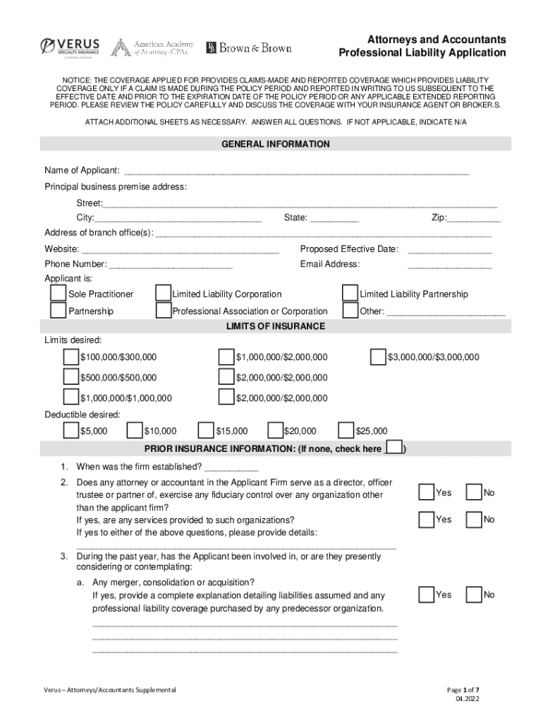 Professional Liability Application