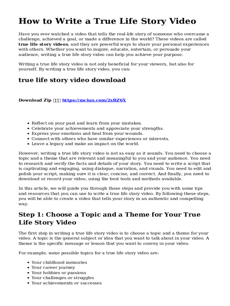 How to Write a True Life Story Video Have you ever watched a video that tells the reallife story of someone who overcame a challenge, achieved a goal, or made a difference in the world? These videos