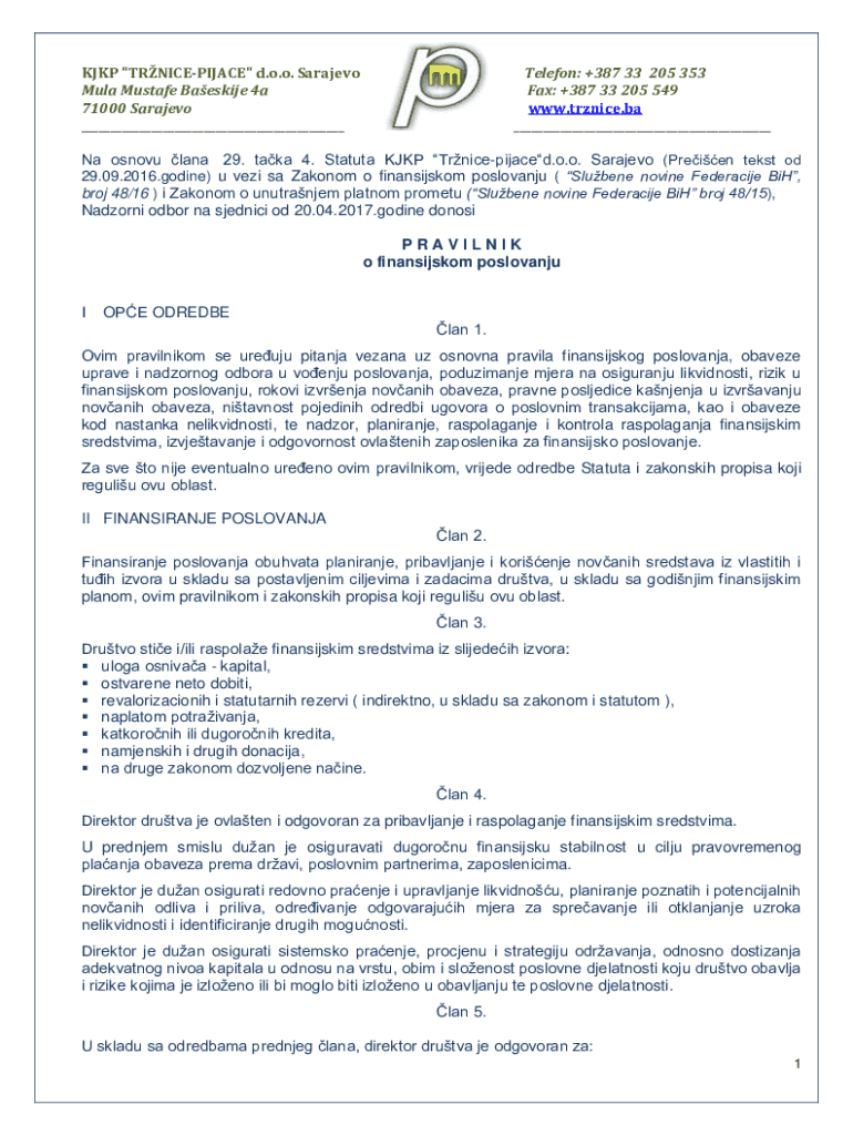 KJKP \"TRNICEPIJACE\" d.o.o. Sarajevo Mula Mustafe Baeskije 4a 71000 Sarajevo ___Telefon: +387 33 205 353 Fax: +387 33 205 549 www.trznice.ba ___Na osnovu lana 29. taka 4. Statuta KJKP Trnicepijaced.o.o.