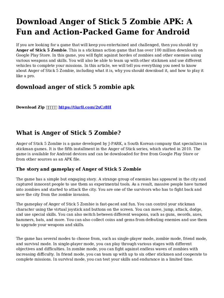 Download Anger of Stick 5 Zombie APK: A Fun and ActionPacked Game for Android If you are looking for a game that will keep you entertained and challenged, then you should try Anger of Stick 5 Zombie.