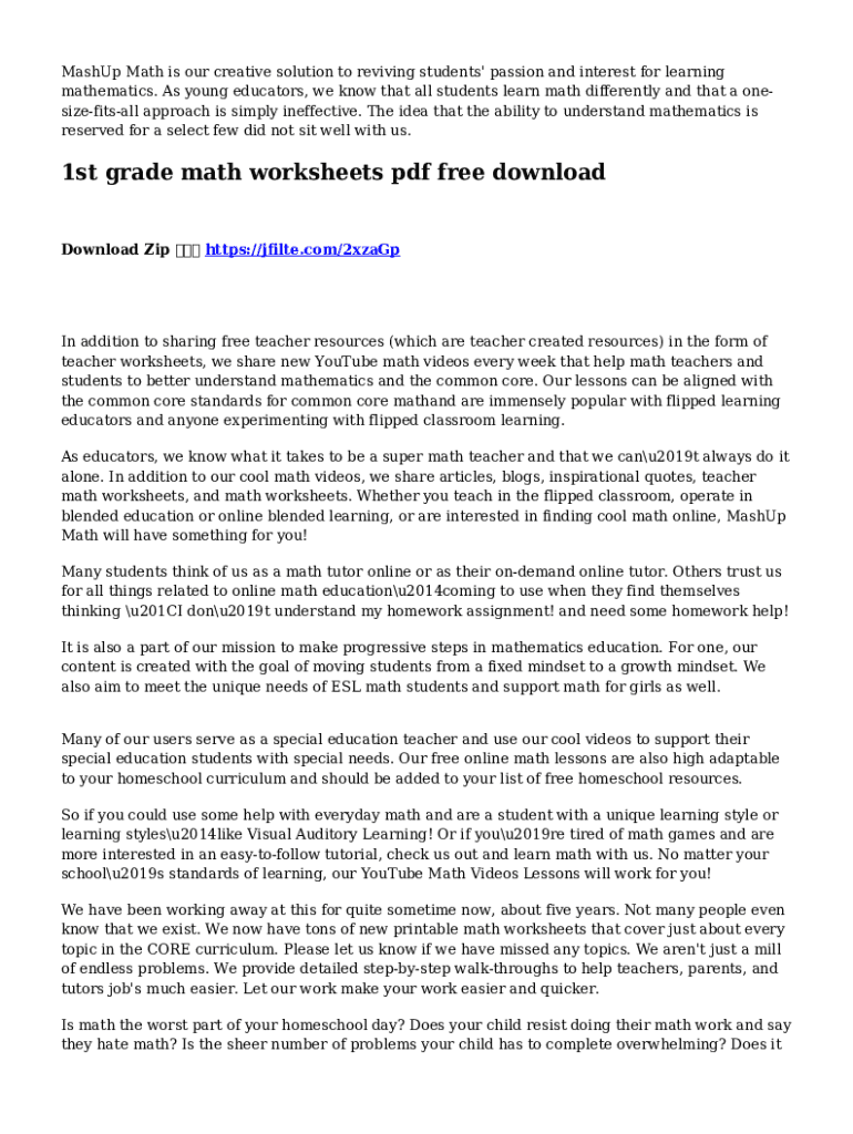 Get the 1st Grade Math Worksheets Pdf Free Download