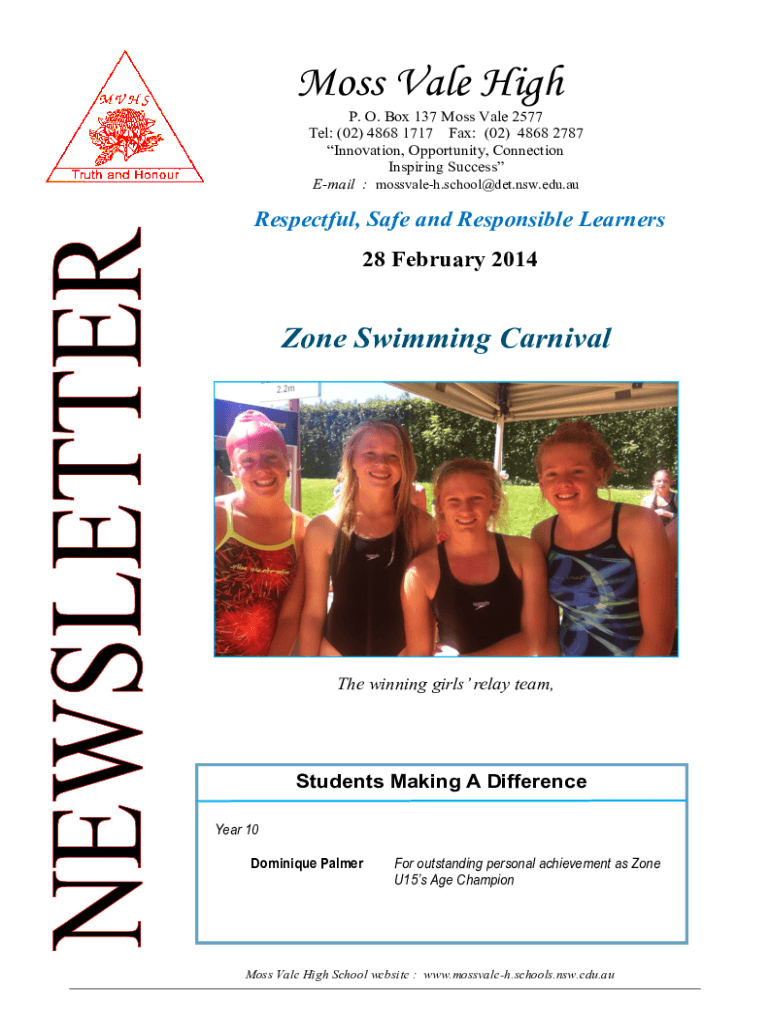 Moss Vale High NewsletterIssue 2 Term 1 2014Moss Vale High