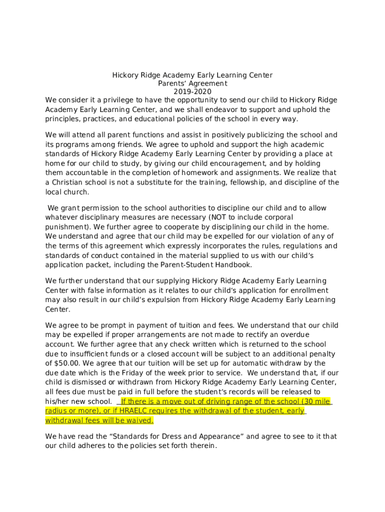 How to fill Hickory Ridge Academy Early Learning Center word template