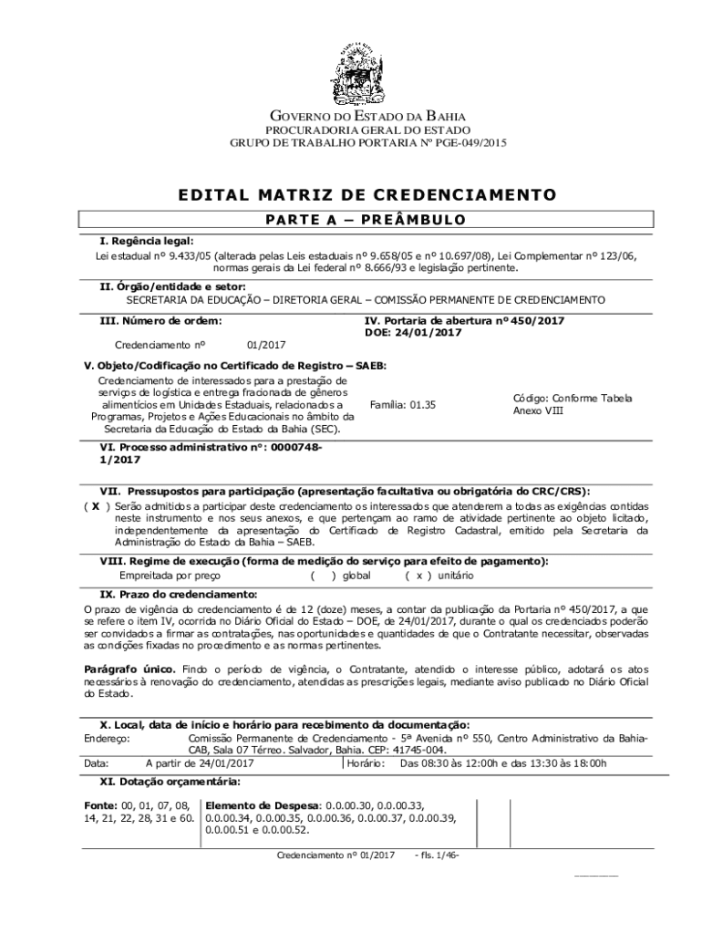 Obtenha o gratuito E D I T A L MA T R IZ D E C R E D E N C I A ME N T O
