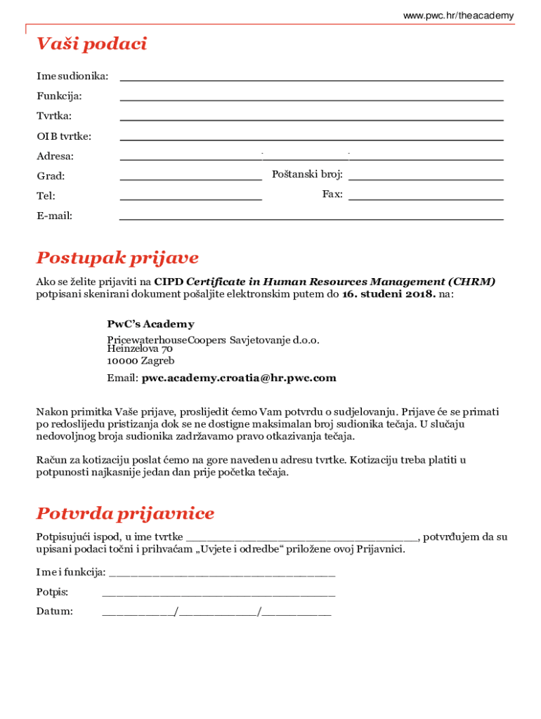 Www.pwc.hr/theacademyCIPD Certificate in Human Resource