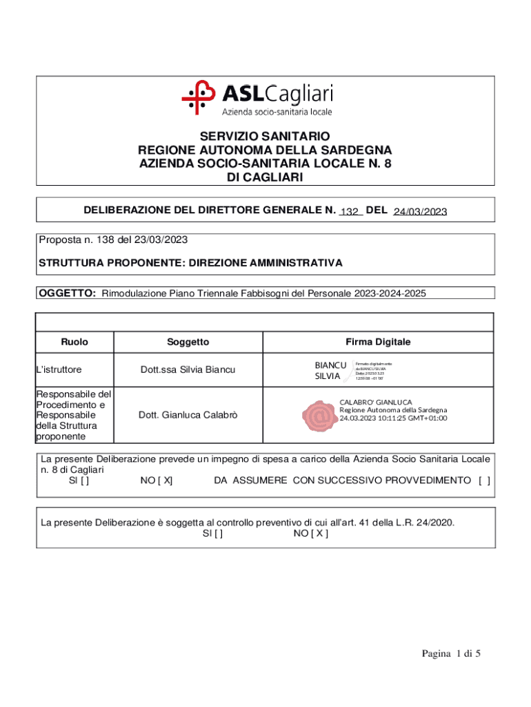 SERVIZIO SANITARIO REGIONE AUTONOMA DELLA SARDEGNA AZIENDA SOCIOSANITARIA LOCALE N. 8 DI CAGLIARI DELIBERAZIONE DEL DIRETTORE GENERALE N. ___ 132 DEL ___ 24/03/2023 Proposta n. 138 del 23/03/2023