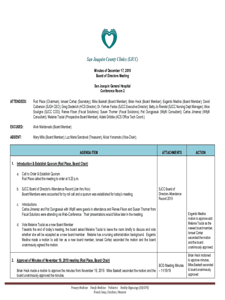 ATTENDEES:Rod Place (Chairman); Ismael Cortez (Secretary);