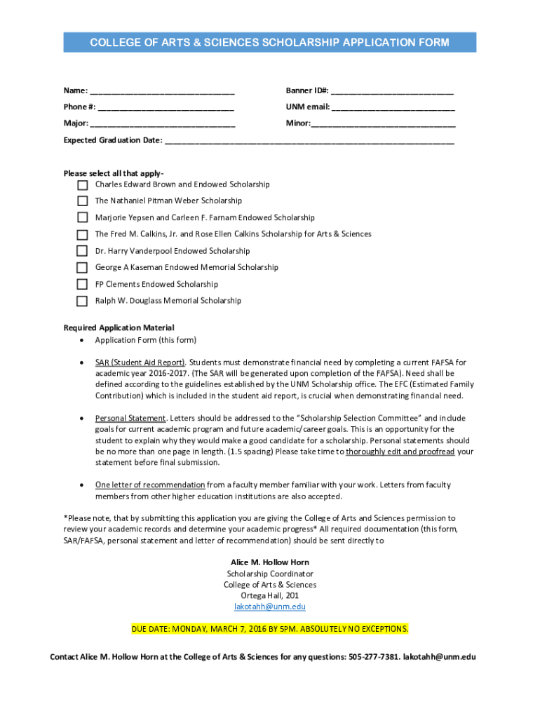 COLLEGE OF ARTS & SCIENCES SCHOLARSHIP APPLICATION Forename: ___Banner ID#: ___Phone #: ___UNM email: ___Major: ___Minor:___Expected Graduation Date: ___Please select all that apply Charles Edward