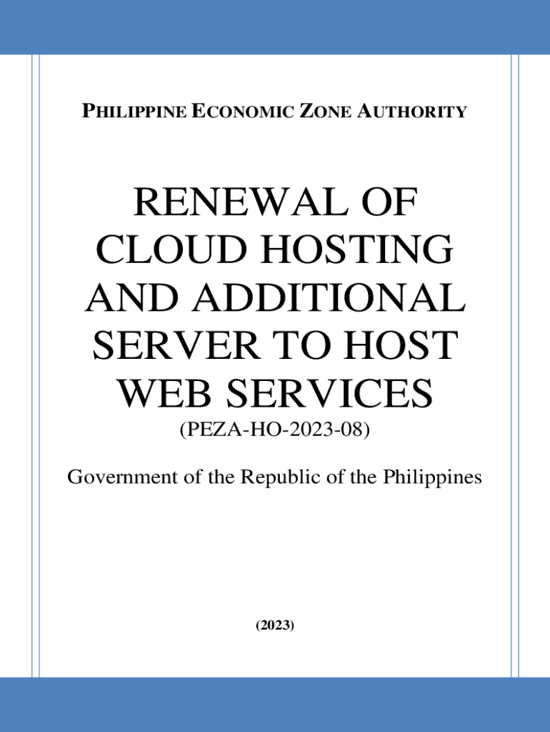 PHILIPPINE ECONOMIC ZONE AUTHORITYRENEWAL OF CLOUD HOSTING AND ADDITIONAL SERVER TO HOST WEB SERVICES (PEZAHO202308) Government of the Republic of the Philippines(2023)1Table of Contents Glossary