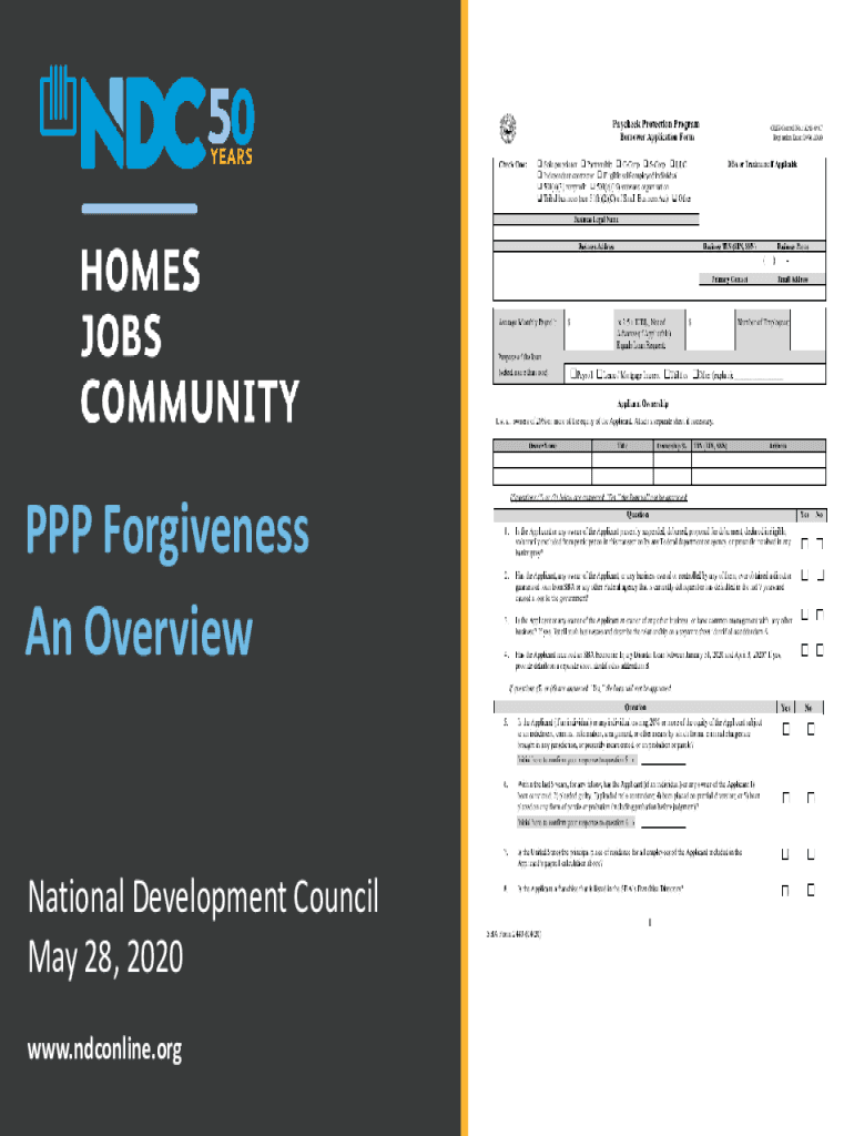 PPP Forgiveness An Overview National Development Council May 28, 2020 www.ndconline.orgNDC P3 Project: Yonkers Public Library Yonkers, NYWHO ARE WE? Who is the National Development Council? Who is