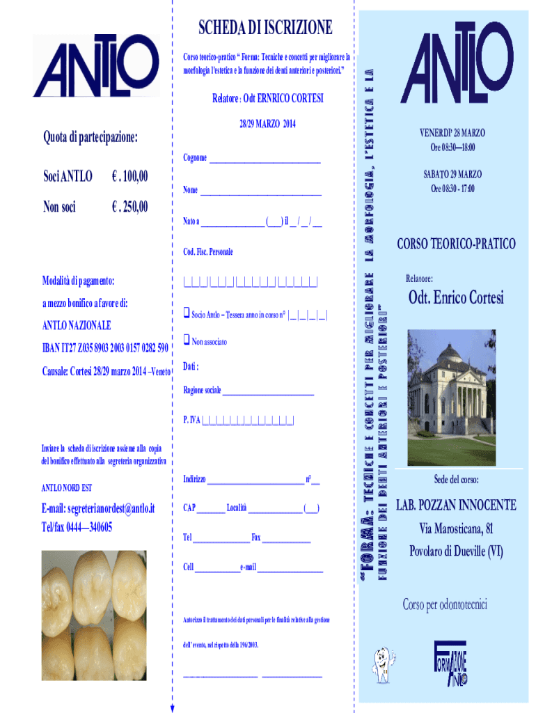 28/29 MARIO 2014Quota DI participation:Cognomen ___Sci ANGLO. 100,00Non sci. 250,00Nome ___