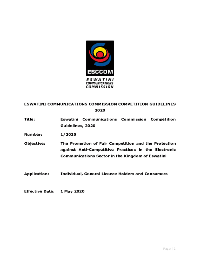 Title:EswatiniCommunicationsCommissionCompetitionGuidelines, 2020