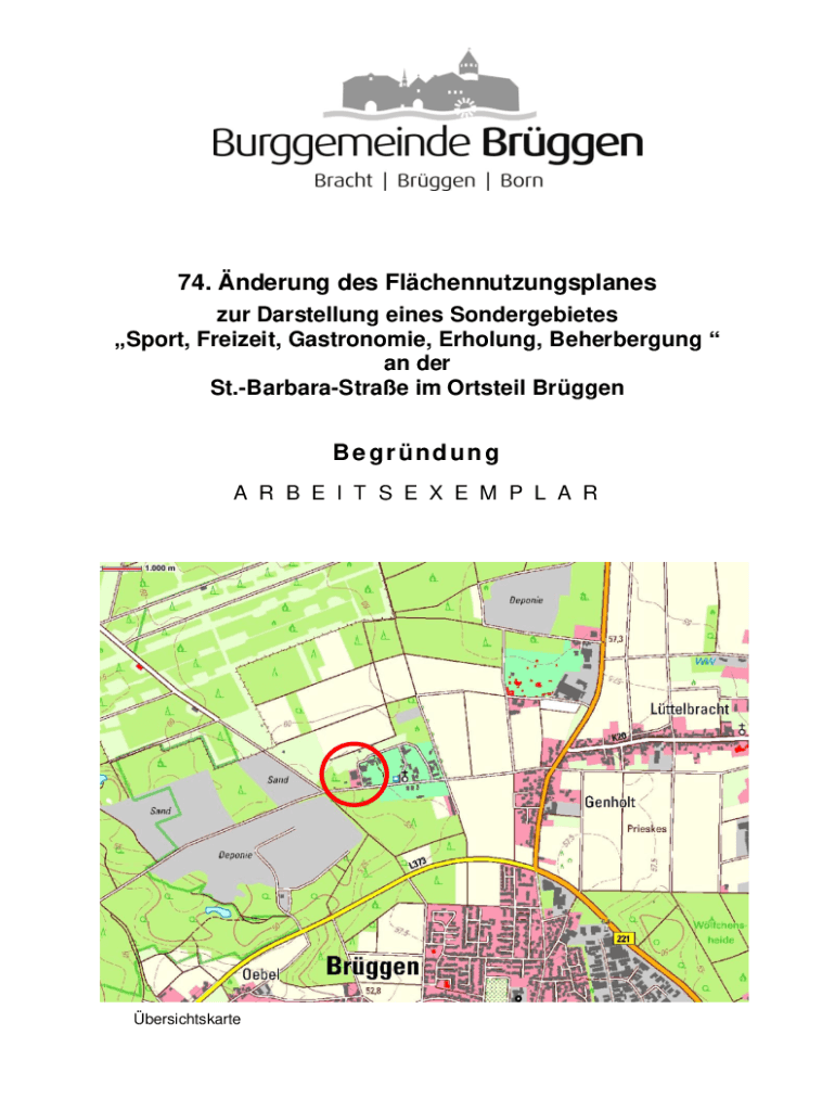 74. nderung des Flchennutzungsplanes zur Darstellung eines Sondergebietes Sport, Freizeit, Gastronomie, Erholung, Beherbergung an der St.BarbaraStrae im Ortsteil BrggenBegrndung A R B E I T S E X