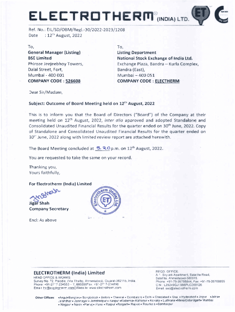 (INDIA) LTD. Ref. No.: OIL/SD/IBM/Regl.30/20222023/1208