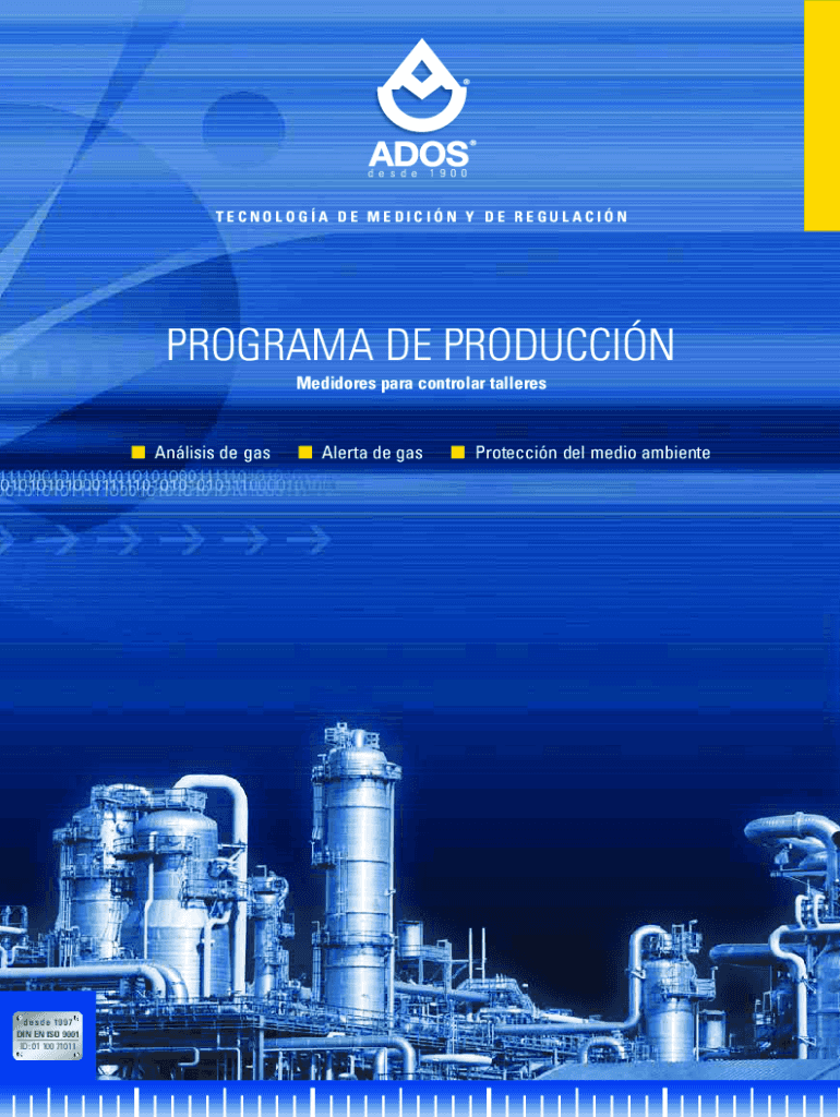 d e s d e19 0 0TECNOLOGA DE MEDICIN Y DE REGULACINPROGRAMA DE PRODUCCIN Medidores para controlar talleresn Anlisis de gasDIN EN ISO 9001 ID: 01 100 71011n Alerta de gasn Proteccin del medio ambienteEmpresa