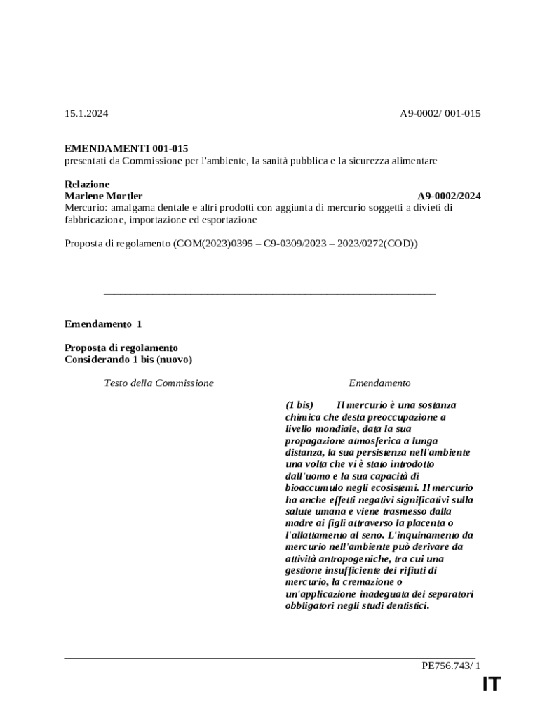 Instructions for the presentati da Commissione per l'ambiente, la sanit pubblica e la sicurezza alimentare form