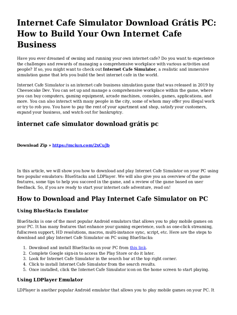 Internet Cafe Simulator Download Grtis PC: How to Build Your Own Internet Cafe Business Have you ever dreamed of owning and running your own internet cafe? Do you want to experience the challenges