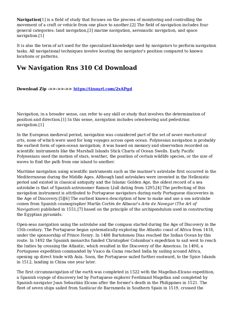 Navigation[1] is a field of study that focuses on the process of monitoring and controlling the movement of a craft or vehicle from one place to another.[2] The field of navigation includes four general