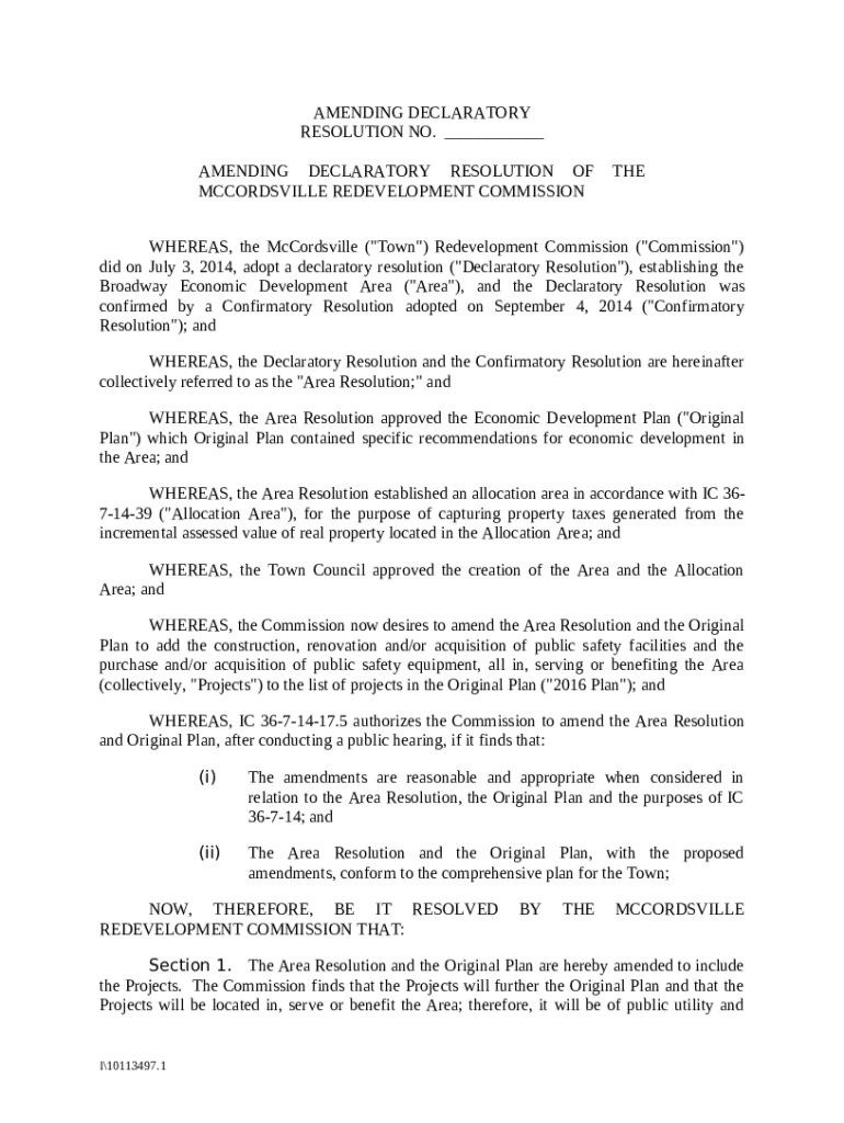 Frequently asked questions about the form Amending Declaratory Resolution
