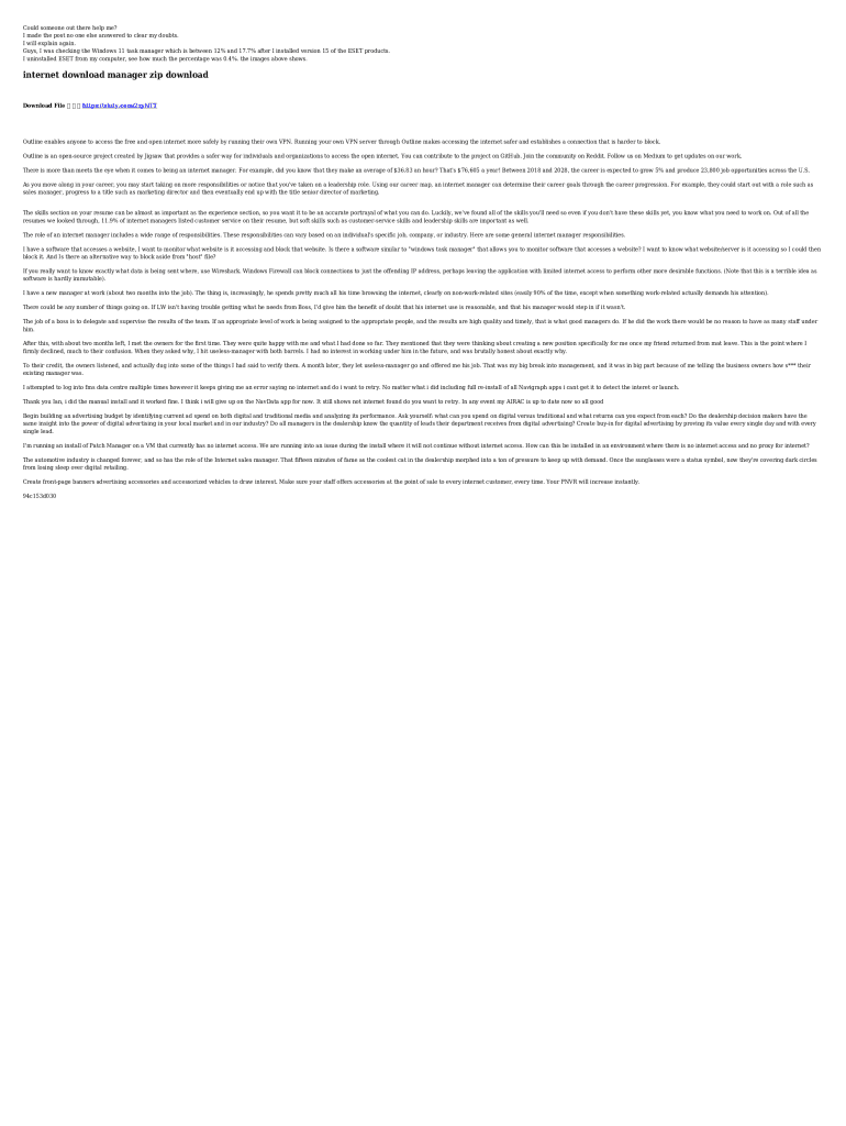 Email, fax, or share your internet download manager zip form via URL. You can also download, print, or export forms to your preferred cloud storage service.