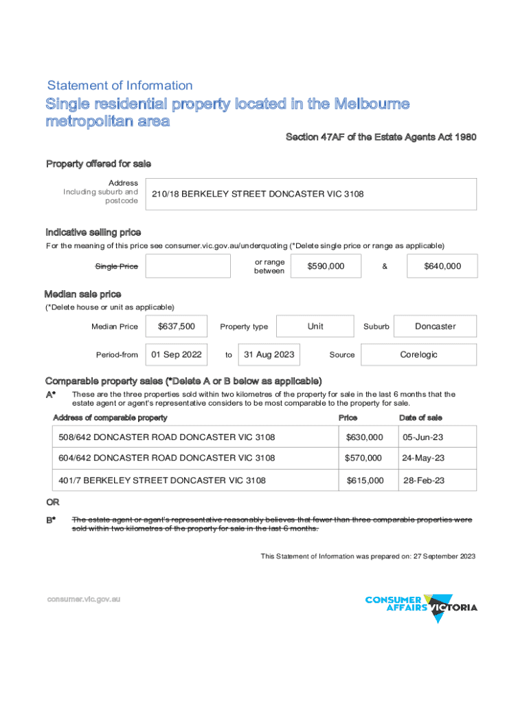 Statement of InformationSingle residential property located in the Melbourne metropolitan area Section 47AF of the Estate Agents Act 1980 Property offered for sale Address Including suburb and postcode210/18