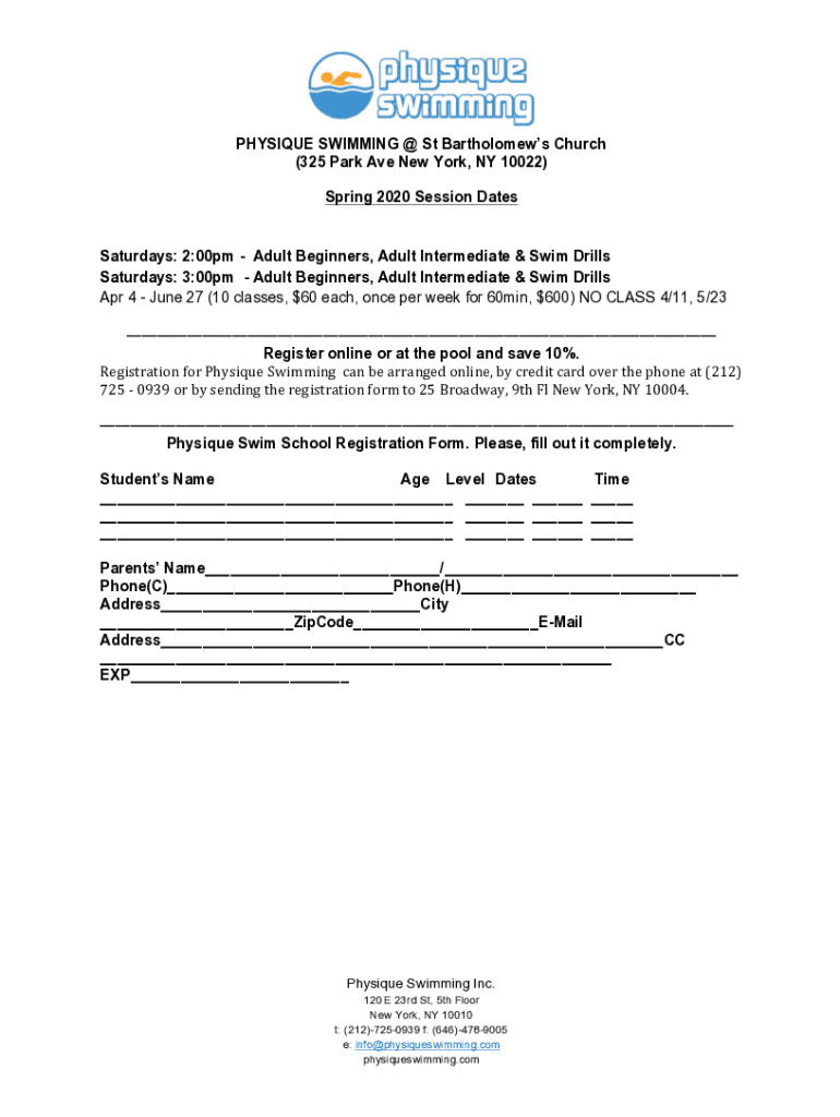 Get the free PHYSIQUE SWIMMINGSt Bartholomew's Church