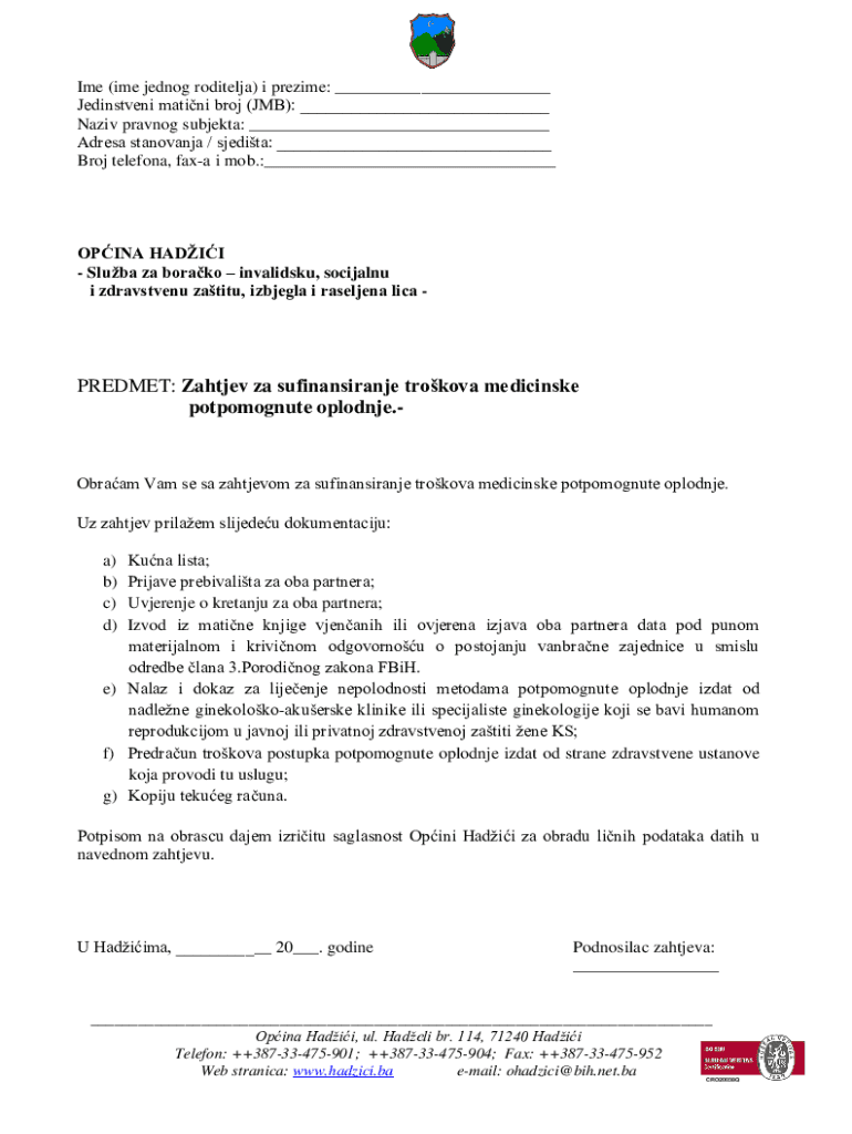 Get the free PREDMET: Zahtjev za sufinansiranje trokova medicinske