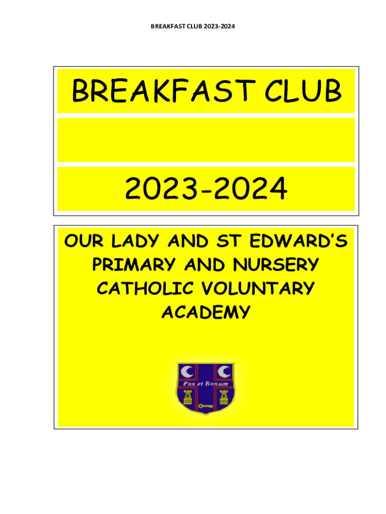 BREAKFAST CLUB 20232024BREAKFAST CLUB 20232024 OUR LADY AND ST EDWARDS PRIMARY AND NURSERY CATHOLIC VOLUNTARY ACADEMYBREAKFAST CLUB 20232024Introduction Our Lady and St Edwards Breakfast Club is available