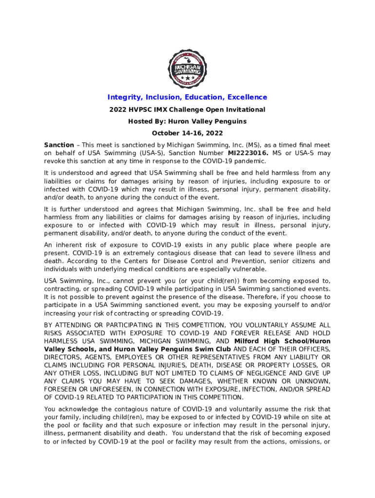 (MS), as a timed final meet on behalf of USA Swimming (USA-S), Sanction Number MI2223016 template instructions