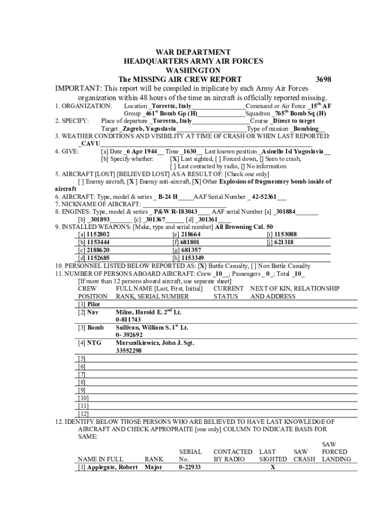 Get the free MISSING AIR CREW REPORT - 461st Bombardment Group