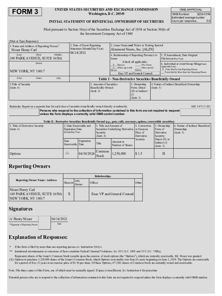 UNITED STATES SECURITIES AND EXCHANGE COMMISSION Washington, D.C. 20549FORM 3OMB APPROVALINITIAL STATEMENT OF BENEFICIAL OWNERSHIP OF SECURITIESOMB Number: 32350104 Estimated average burden hours