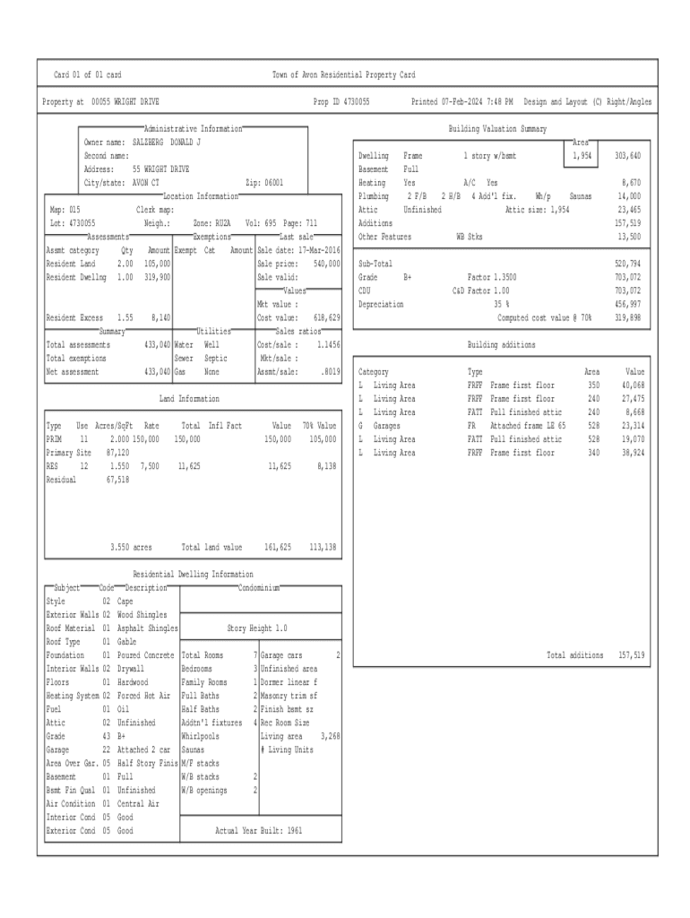 Property attorn of Avon Residential Property Card00055 WRIGHT Driver ID 4730055Administrative Information