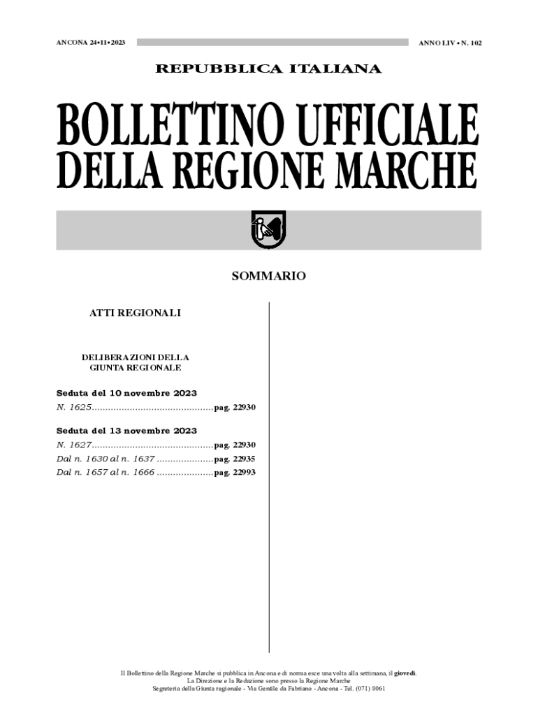 ANCONA 24112023ANNO LIV N. 102 ANNO LII N. 46ANCONA 17062021REPUBBLICA ITALIANA REPUBBLICA ITALIANABOLLETTINO UFFICIALEDELLA REGIONE MARCHE SOMMARIO SOMMARIO ATTI DELLA REGIONEATTI REGIONALILEGGI