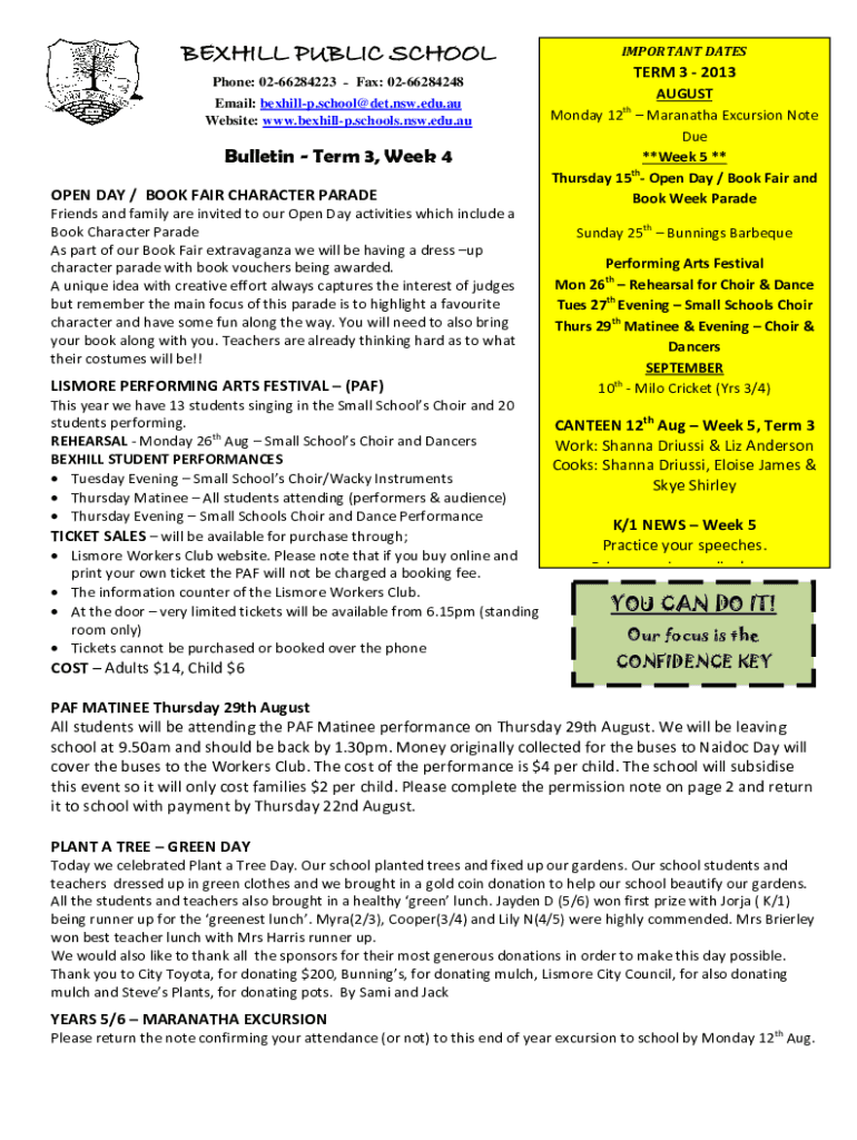 Get the free Bulletin - Term 3, Week 4