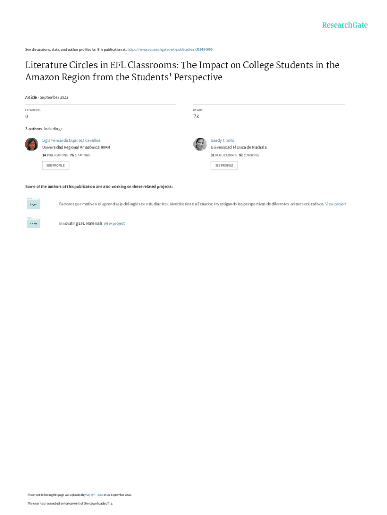 See discussions, stats, and author profiles for this publication at: https://www.researchgate.net/publication/363484990Literature Circles in EFL Classrooms: The Impact on College Students in the Amazon