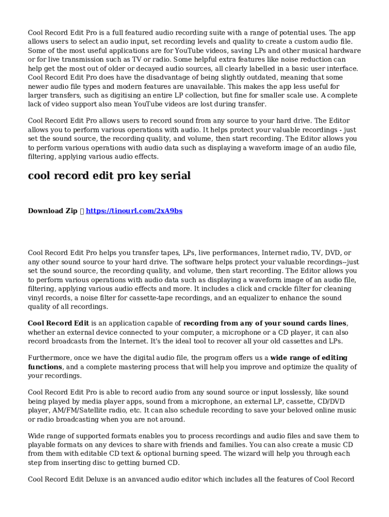 Fill out your audio editor and recorder online with pdfFiller!