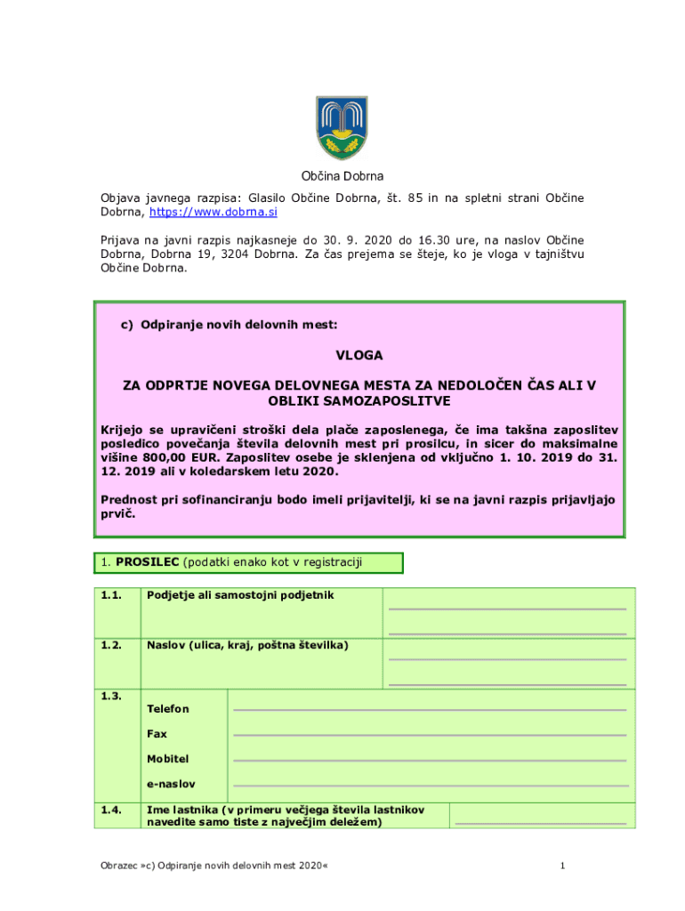 Get the free Objava javnega razpisa: Glasilo Obine Dobrna, t