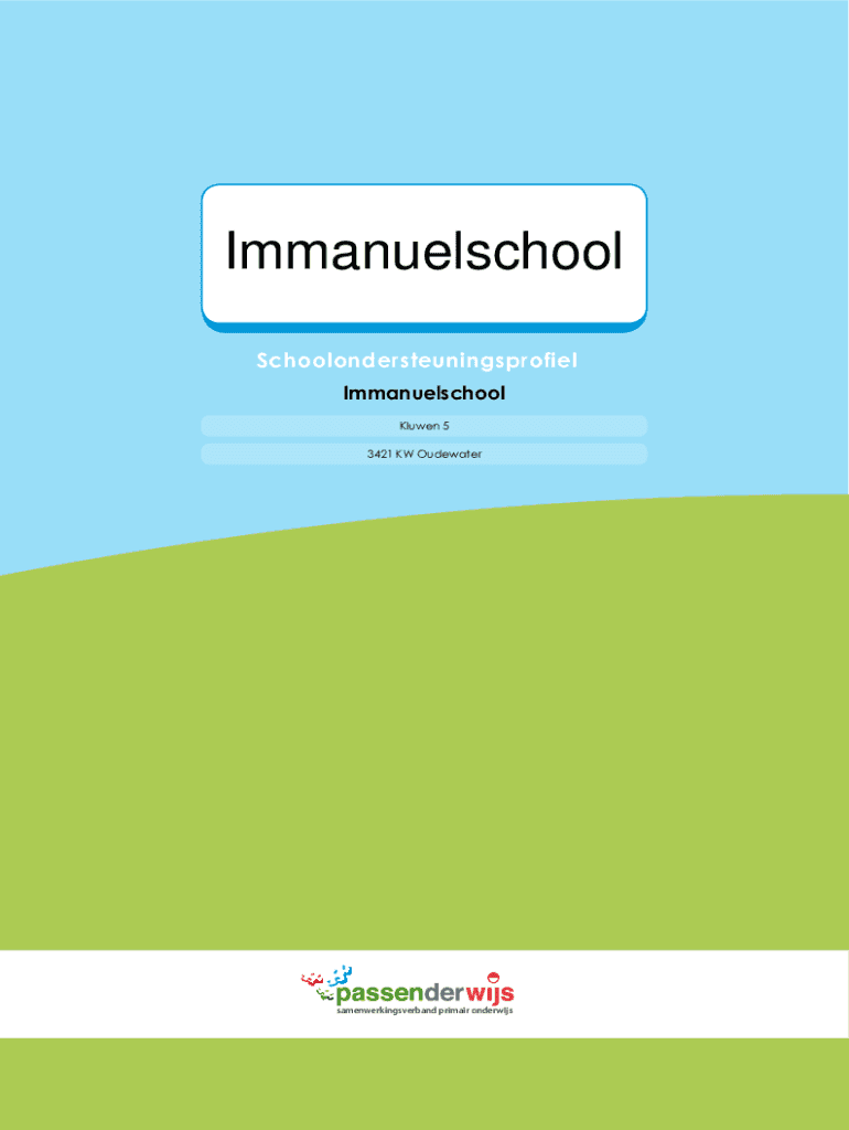 Immanuelschool Schoolondersteuningsprofiel Immanuelschool Kluwen 53421 KW Oudewatersamenwerkingsverband primair onderwijsAlgemene gegevensInhoudsopgaveVoorwoord342. Missie en Visie van de school43.