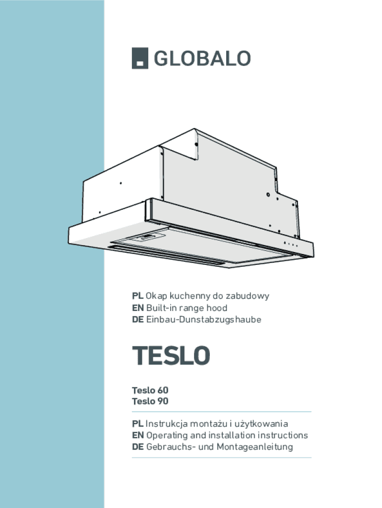 PL Okap kuchenny do zabudowy EN Builtin range hood DE EinbauDunstabzugshaubeTESLO Teslo 60 Teslo 90 PL Instrukcja montau i uytkowania EN Operating and installation instructions DE Gebrauchs und MontageanleitungSpis