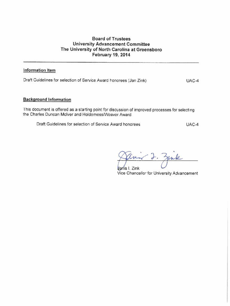 UAC4University Advancement Policies and Procedures Nomination Procedure for: Charles Duncan McIver Award Holderness/Weaver Award Draft Proposal (02/04/2014)Contents: 1. Purpose 2. Authority 3. Presentation