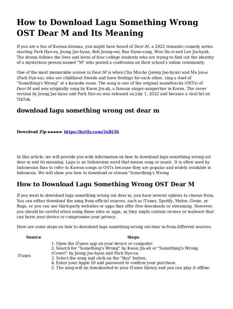 How to Download Lagu Something Wrong OST Dear M and Its Meaning If you are a fan of Korean dramas, you might have heard of Dear.M, a 2022 romantic comedy series starring Park Hyesu, Jeong Jaehyun,