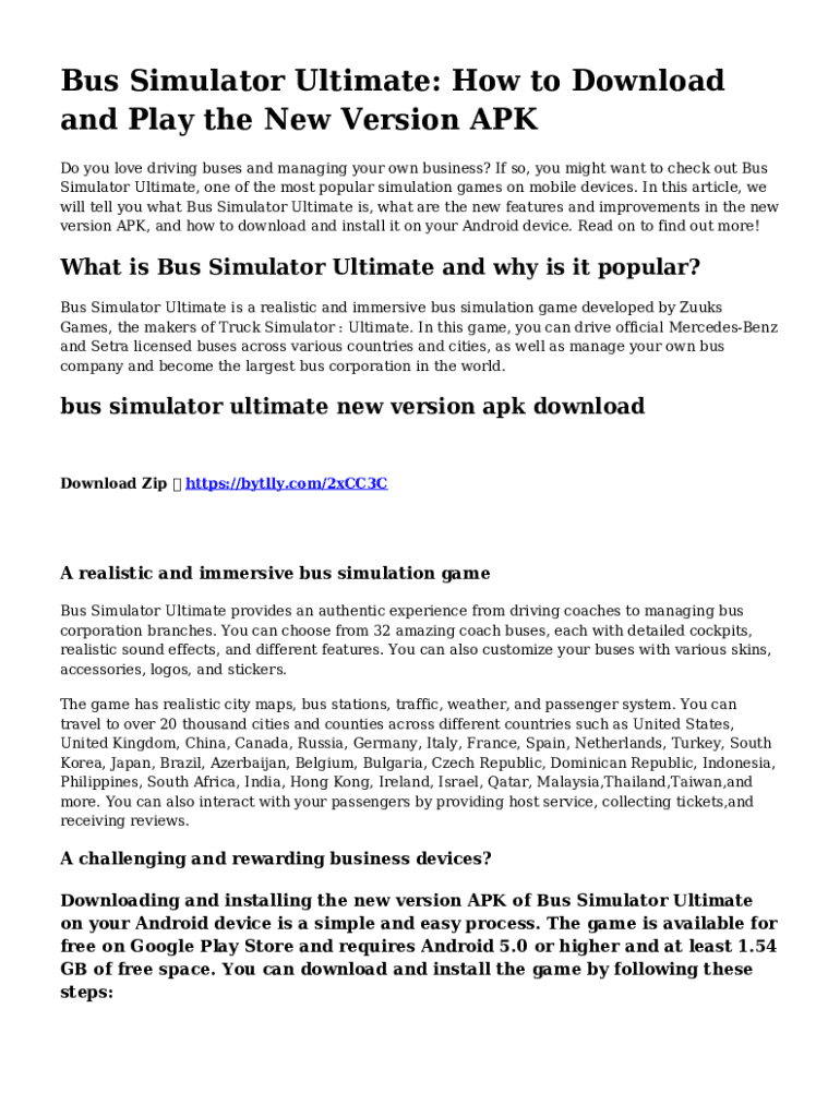 Bus Simulator Ultimate: How to Download and Play the New Version APK Do you love driving buses and managing your own business? If so, you might want to check out Bus Simulator Ultimate, one of the