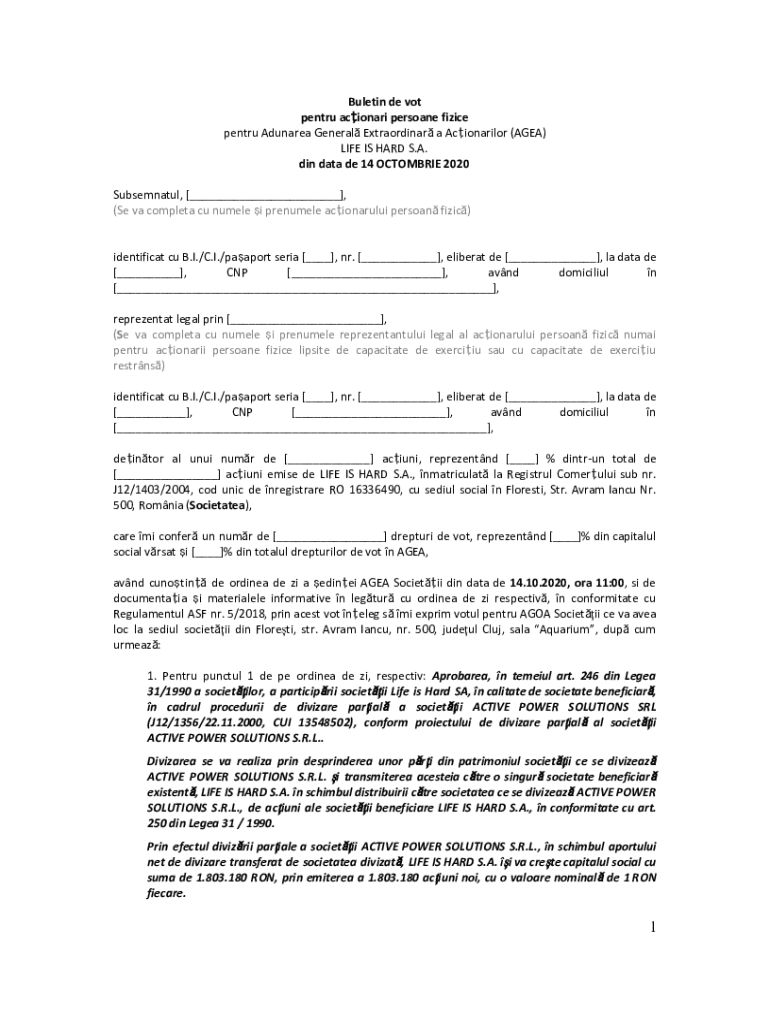 Get the free BULETIN DE VOT SECRET IN ADUNAREA GENERALA ...