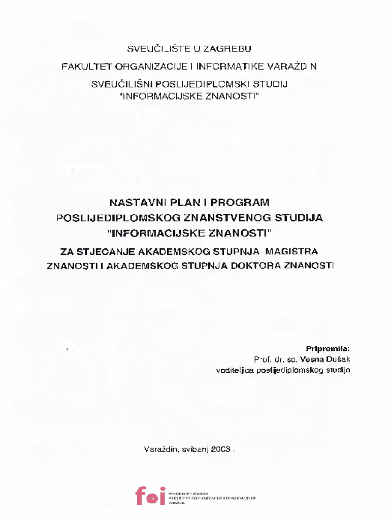 Get the free nastavni plan i program - poslijediplomskog znanstvenog studija - library foi
