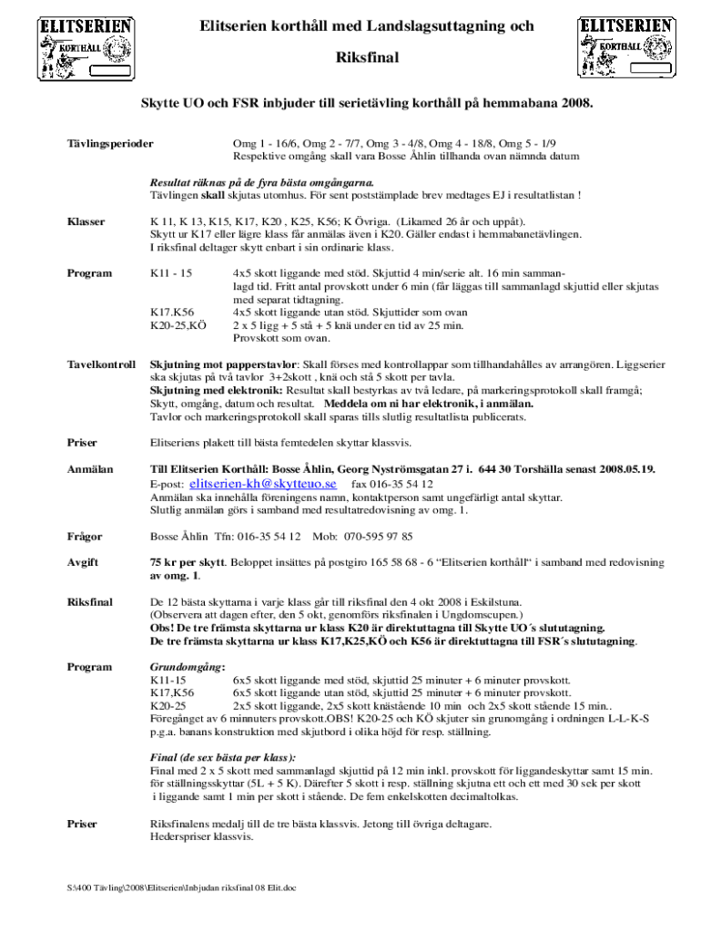 Get the free Elitserien korthll med Landslagsuttagning och Riksfinal