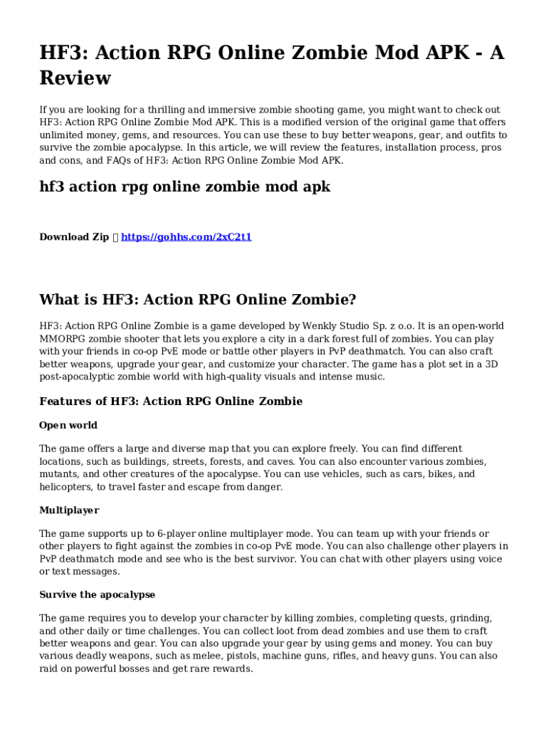 HF3: Action RPG Online Zombie Mod APK A Review If you are looking for a thrilling and immersive zombie shooting game, you might want to check out HF3: Action RPG Online Zombie Mod APK. This is a modified