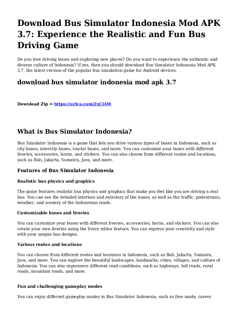 Fill out your bus simulator indonesia apk online with pdfFiller!